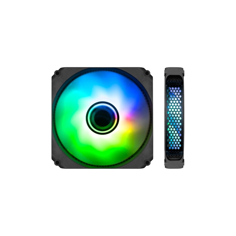 Características - Velocidad de giro 1000 RPM (+-10%) - Efecto túnel infinito ARGB - Muy silencioso - Tipo de conectividad molex macho/hembra + ARGB 3 Pin 5V - Aspas traslúcidas Especificaciones Desempeño Localización adecuada: Carcasa del ordenador Tipo: Ventilador Diámetro de ventilador: 12 cm Velocidad de rotación (máx.): 1000 RPM Nivel de ruido (alta velocidad): 21,59 dB Máximo flujo de aire: 46,27 cfm Presión máxima de aire: 1,16 mmH2O Tipo de soporte: Hidráulico Cantidad por paquete: 1 pieza(s) Diseño Color del producto: Multicolor Número de ventiladores: 1 Ventilador(es) Número de aspas del ventilador: 9 Iluminación LED: Si Iluminación de color: Ámbar, Azul, Verde, Rojo Tipo de conector LED: 3 pines Conector de ventilador: 3 pines Control de energía Consumo energético: 2,04 W Voltaje: 12 V Intensidad nominal: 0,17 A Peso y dimensiones Dimensiones del ventilador (A x A x P): 120 x 120 x 25 mm Peso de ventilador: 93 g