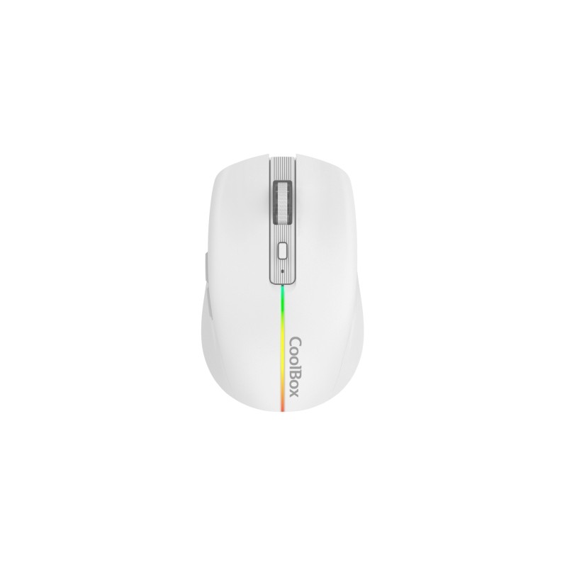 Ratón Inalámbrico Gaming con iluminación rainbow (RGB) y batería recargable. 1600 DPIIncluye 6 botones (Botón DPI, botón derecho, botón izquierdo, botones multimedia y botón de encendio y apagado), rueda de desplazamiento, batería recargable de 500mAh con puerto de carga USB-C (cable incluido) y USB nano receptor Bluetooth.Resolución ajustable a 800, 1200 o 1600 dpi, para tener todo el control y precisión en tu mano.Ratón inalámbrico 2.4G gaming, fabricado en material ABS de alta calidad, con tecnología óptica y dos colores a elegir, blanco o negro. Clics ultrasilenciosos.Su delgada línea de iluminación RGB le da un aspecto gaming sin estridencias, manteniendo su aspecto sobrio con un toque canalla.