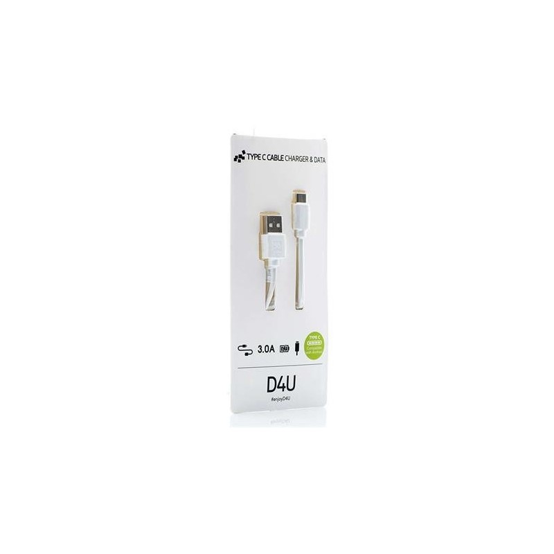 D4U Cable Datos Tipo-C A Usb Blanco 3.0A 1Mtr Blanco