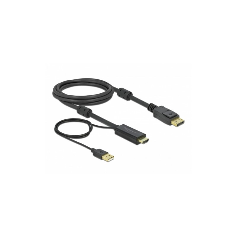 DeLOCK 85964 adaptador de cable de vÍ­deo 2 m HDMI tipo A (Estándar) DisplayPort + USB Type-A Negro