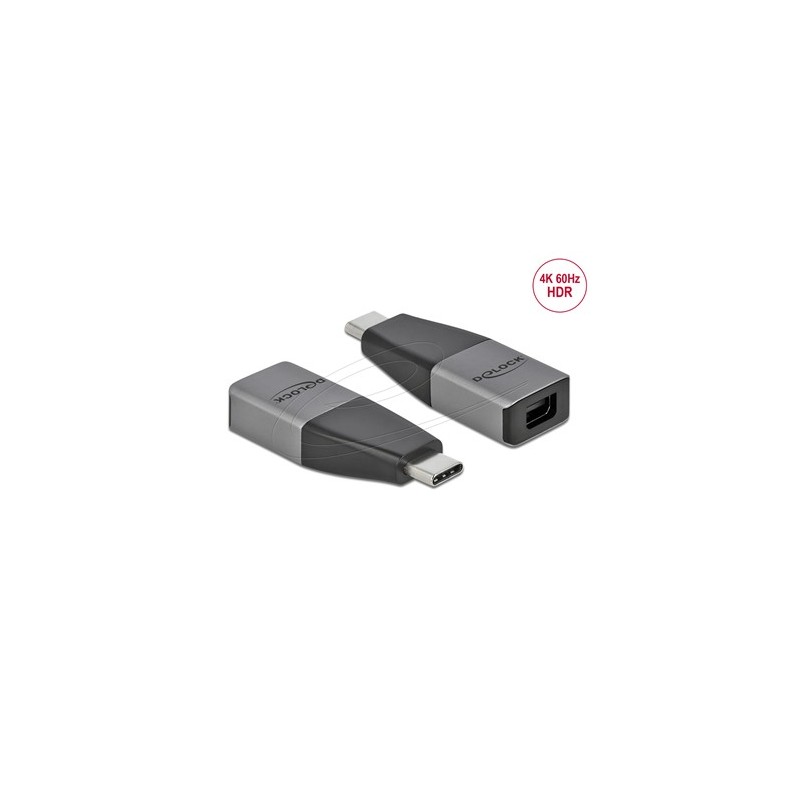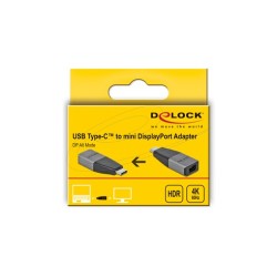 Delock Adaptador USB Type-C ™ a mini DisplayPort (DP Alt Mode) 4K 60 Hz – diseño compactoNúmero de elemento 64121Este adaptador de Delock es adecuado para la conexión de un monitor DisplayPort a un equipo con interfaz USB-C™ y compatibilidad con el modo alternativo DisplayPort. Por tanto, el adaptador se puede conectar a diferentes equipos portátiles como MacBook, Chromebook y similares. Además, el adaptador también puede funcionar en una interfaz Thunderbolt™ 3.Pequeño ayudante robustoDebido a sus pequeñas dimensiones y su carcasa metálica estable, este adaptador Delock es especialmente adecuado para viajar. Gracias a su pequeño tamaño, el adaptador USB cabe en el bolsillo de cada pantalón o se puede guardar junto con la computadora portátil o la tableta en el bolso y usarse según sea necesario.Detalles tecnicosConectores:1 x SuperSpeed USB (USB 3.2 Gen 1) USB Type-C™ macho1 x mini DisplayPort hembraConjunto de chips: Chrontel CH7213CEspecificación DisplayPort 1.2Dirección de señal: Entrada USB Type-C™ >, Salida DisplayPortResolución máxima 3840 x 2160 @ 60 Hz(depende del sistema y del hardware conectado)Transferencia de señales de audio y vídeoCompatible con HDRCompatible con HDCP 1.4 y 2.2Alimentación a través del bus USBConectar y listoDimensiones (LAxANxAL): aprox. 46 x 16 x 8 mmColor: grisRequisitos del sistemaChrome OS 83.0 o superiorLinux Kernel 5.4 o superiorMac OS 10.15.6 o superiorWindows 8.1/8.1-64/10/10-64iPad Pro (3ª generación) o superiorPC o dispositivos móviles con un puerto USB Type-C™ o Thunderbolt™ 3 libreFunciónConectar y listoHDR / HDR10Especificación técnicaDisplayPort 1.2Sistema operativo compatibleChrome OS 83.0 or aboveLinux Kernel 5.4 or aboveMac OS 10.15.6 or aboveWindows 10 32-bitWindows 10 64-bitWindows 8.1 32-BitWindows 8.1 64-BitInterfazSalida1 x mini DisplayPort hembra de 20 pinesEntrada 1 x USB Type-C™ machoCaracterísticas técnicasConjunto de chips Chrontel CH7213CResolución máxima de pantalla 4096 x 2160 @ 60 HzTransmisión de señalvídeoaudioCaracterísticas físicasLongitud 46 mmAncho 16 mmAltura 8 mmColor gris