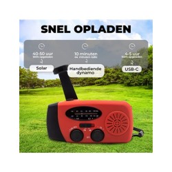 Radio de Emergencia Denver - Banco de Energía Solar - Radio FM - Kit de Emergencia - Linterna - A Cuerda - Botón SOS - Banco de Energía Solar - SCR2005Conoce la radio de emergencia Denver SCR2005. Con esta radio FM, tendrás todo lo que necesitas en la carretera a mano. Recibe diferentes estaciones de radio en FM o AM y cárgala con la manivela lateral. Escucha la radio hasta 15 horas con la batería completamente cargada. ¡También puedes usarla como batería externa para cualquier smartphone!Características principalesRadio de emergencia portátil alimentada por energía solarRadio AM/FMLinterna LED de 1 WSirena SOSPanel solar incorporadoManivela manualBatería incorporada de 2000 mAh (40-50 horas al sol, 2,5 horas de arranque o 4-5 horas de carga USB para cargar completamente)Carga a través de la entrada USB-CTambién se pueden utilizar 3 pilas AAA.USB para cargar el teléfonoEl indicador de nivel de batería muestra la energía restanteLa radio funciona de 12 a 15 horas con una carga completa, la linterna de 10 a 12 horas.1 minuto de arranque proporciona de 3 a 5 minutos de radio o de 5 a 10 minutos de linterna.¡Genera tu propia energía!Esta radio de manivela Denver está equipada con una manivela que te permite generar tu propia energía. ¡Con solo un minuto de uso, tendrás suficiente energía para usar la linterna integrada durante 5-10 minutos o para escuchar la radio durante 3-5 minutos! ¡La Denver SCR2005 también incluye un panel solar! En resumen, ¡súper práctica, por ejemplo, para tus vacaciones! Con la batería integrada de 2000 mAh completamente cargada, puedes usar la linterna hasta 10-12 horas y escuchar la radio entre 12 y 15 horas.Se puede utilizar como banco de energía.¿No tienes cargador? Con esta radio multifuncional también puedes cargar tu smartphone. ¡La radio cuenta con una entrada USB! ¿Generar energía con el sol o con la manivela no es lo suficientemente rápido? ¡Carga la batería externa a través de la entrada USB antes de salir! El indicador integrado muestra el nivel de carga de la batería.Uso multifuncionalEl Denver SCR2005 no solo se puede usar como radio, sino también como linterna y batería externa. ¡Además, cuenta con una sirena SOS en caso de emergencia!