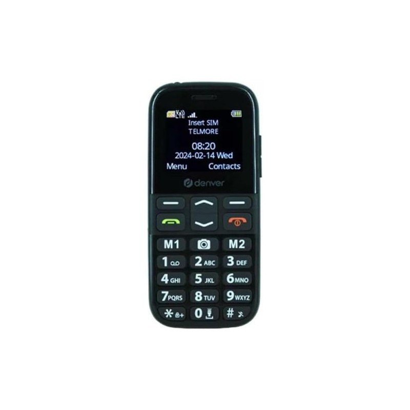 Teléfono Denver BAS-18600L 4G Senior - NegroDenver BAS-18600L Teléfono 4G para personas mayores: seguridad, sencillez y tranquilidadDescubra un teléfono que le permite estar conectado sin esfuerzo. El teléfono Denver BAS-18600L 4G Senior combina fiabilidad con funciones fáciles de usar, como dígitos grandes, un botón SOS/alarma y una interfaz sencilla. Con una pantalla TFT en color de 1,77 pulgadas y una sólida conectividad 4G LTE, este dispositivo compacto garantiza que pueda leer, llamar y enviar mensajes de texto con total confianza. Incluso incluye una cámara integrada, radio FM y linterna, perfectas para el día a día.Características principales y especificaciones- Pantalla TFT grande y fácil de leer de 1,77 pulgadas para una navegación clara por los menús- Botón SOS/Alarma que proporciona asistencia inmediata cuando se necesita- 4G LTE y ranuras SIM duales que garantizan una señal fiable y opciones de uso flexibles- Cámara integrada de 0,3 MP para capturar momentos y compartirlos con tus seres queridos- Batería de litio de 900 mAh que ofrece un tiempo de espera prolongado para mayor tranquilidad- Cargador USB-C incluido para una carga rápida y sin complicaciones- Almacenamiento ampliable mediante ranura para tarjeta MicroSD para guardar fotos y contactos- Interfaz multilingüe compatible con más de 15 idiomas (incluidos alemán, español, francés y más)- Construcción ligera y compacta que facilita su transporte en bolsillos o monederos