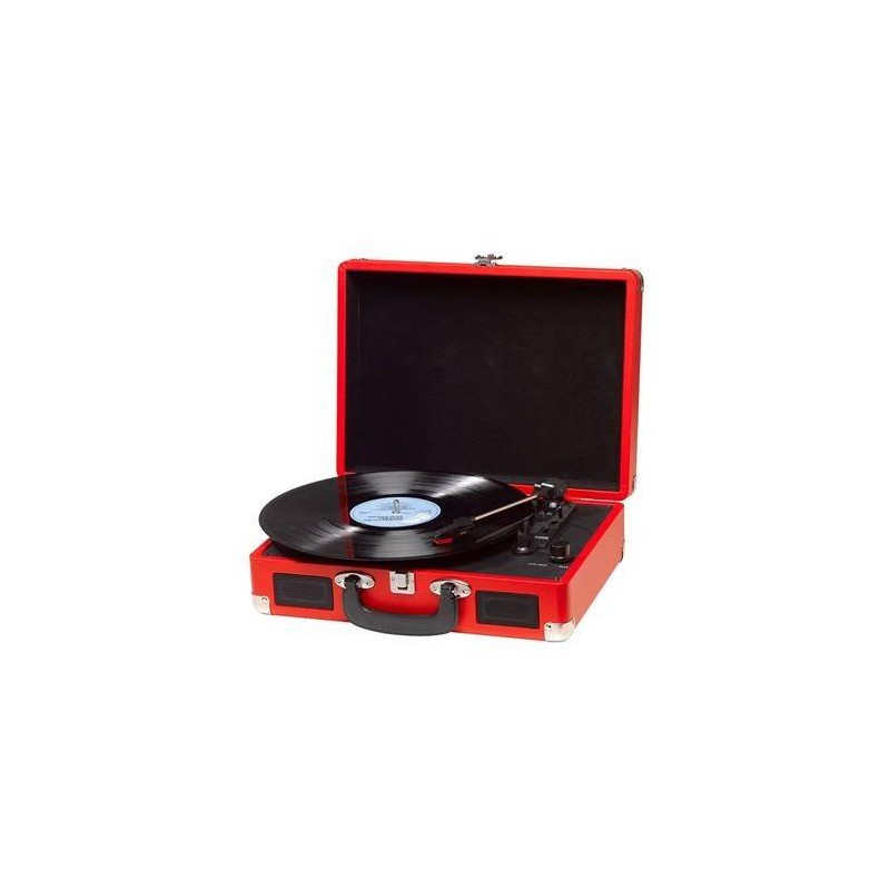 Tocadiscos USB con software de grabación para PC includio. Funciona también como un tocadiscos normal con altavoces integrados y conexión al teléfono en la parte posterior para conectarlo con el sistema de música. Puede reproducir discos de vinilo de331/3, 45 o 78 rpm. Graba desde los discos LP hacia la computadora utilizando un cable USB y un software para PC que se incluyen. Aguja fonocaptora y función de parada automática por el brazo. Se presente en un bonito diseño en maleta para un transporte fácil. Volumen de salida a través de los altavoces: 2 x 1W. Código EAN: 5706751026324