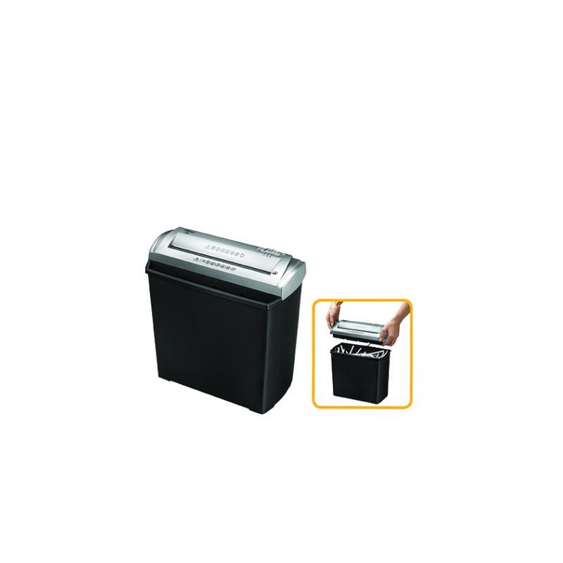 Destructora de diseño compacto y cabezal extraíble para un fácil vaciado de la papeleraDiseñada para un uso ocasional. Hogar y oficina en casa. 1 usuarioDestruye hasta 5 hojas en tiras de 7mm (nivel de seguridad básico, P-1)Ciclo de trabajo de 2 minutosPapelera de 12 litros, con capacidad de destrucción diaria para 100 hojasDestruye clips, grapas y tarjetas de crédito2 años de garantía en la máquina y 3 años de garantía en cuchillas de corte