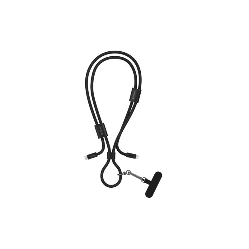 DEVIA 2 En 1 Cable Datos Lightning A Tipo C 3A 27W + Colgador Movil Ajustable 1.6Mtrs Nylon Negro
