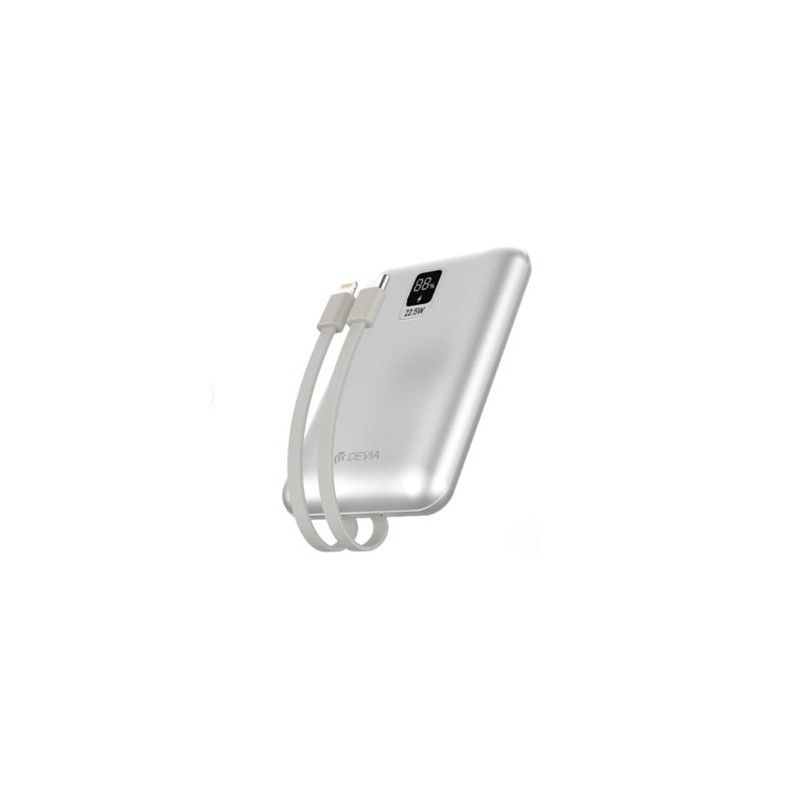 DEVIA Bateria Externa Portatil 10000mAh 22.5W Con Cable Tipo C Y Lightning Plata