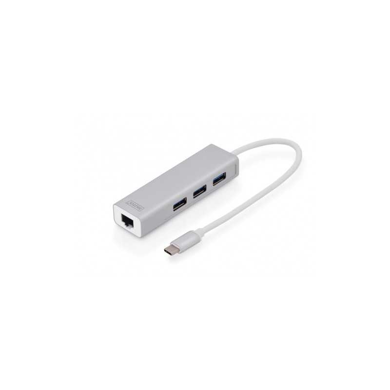 Digitus DA-70255 hub de interfaz USB 3.2 Gen 1 (3.1 Gen 1) Type-C 1000 Mbit/s Gris, Blanco