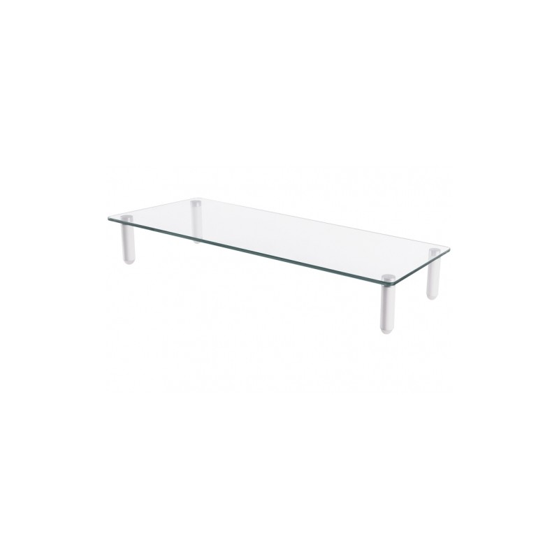 DESCRIPCIÓN DEL PRODUCTOS Montaje Capacidad máxima de peso: 20 kg Tamaño máximo de pantalla: 81,3 cm (32") Tipo de montaje: Escritorio Tamaño mínimo de pantalla: 33 cm (13") Número de pantallas soportadas: 1 Montaje: Independiente Diseño Color del producto: Transparente Material de la carcasa: Aluminio, De plástico Peso y dimensiones Ancho: 560 mm Profundidad: 210 mm Altura: 80 mm Peso: 1,51 kg
