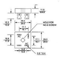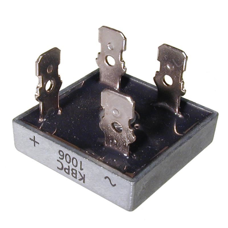 Diodo puente 10A 600V cuadrado Faston. Medidas: 29x29x11mm.
