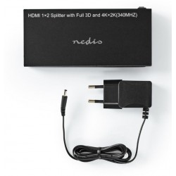 Nedis distribuidor Hdmi 1 entrada 2 salidas compatible con resoluciones hasta 4K30Hz y HDMI hasta 1.4. incluye un adaptador de alimentación externo, por lo que no tendrá que depender de la potencia de los dispositivos HDMI. ( RESOLUCIONES NO ADMITIDAS: Ultra HD 4K a 60 Hz (3840 x 2160) HDR ni ARC )