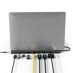 Función extender escritorio: Windows: Hasta un total de 3 escritorios independientes (2 Salidas del HUB + Pantalla principal sobremesa / Pantalla ordenador portátil) Mac: Limitado a 2 escritorios independientes (1 Salida del HUB + Pantalla de Macbook / iMAC)