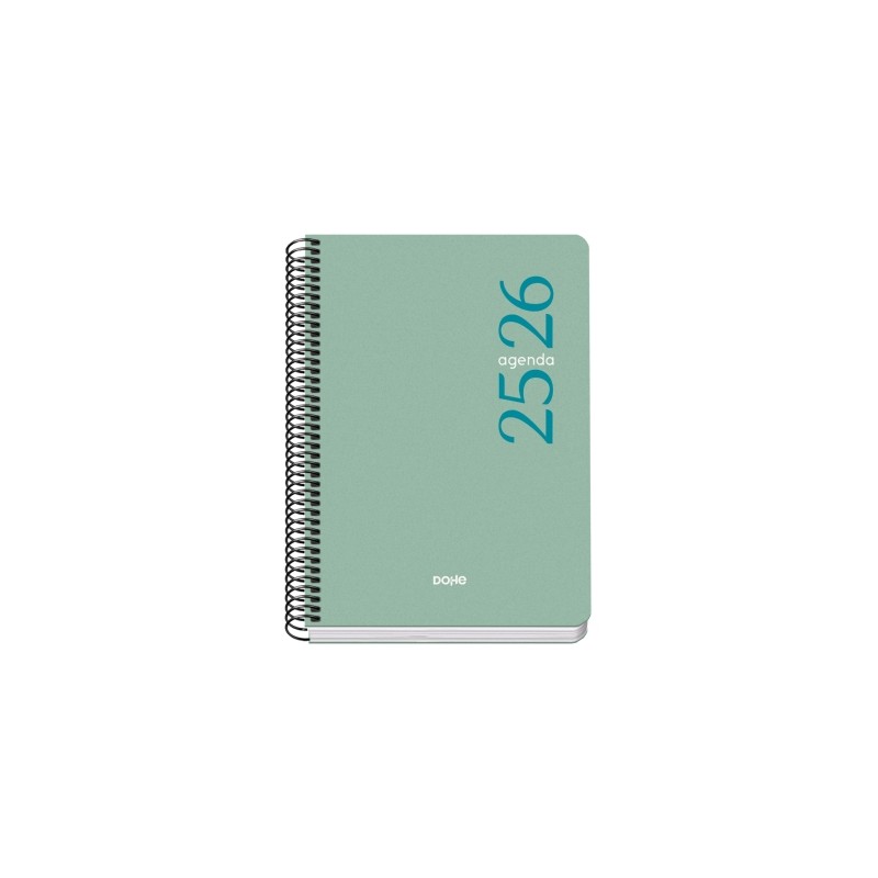 Agenda escolar 2025-2026 semana vista con cubierta en polipropileno, con puntas redondeadas. Encuadernada en espiral metálico de color. Interior en papel offset de 70 gramos impreso a un color. Con Certificado FSC Mixto. Características DOHE 52070-25 agenda personal Agenda escolar 2025 - 2026 Especificaciones Características Tipo de producto: Agenda escolar Año(s): 2025 - 2026 Color del producto: Verde Coloración: Monocromo Formato: A5 Peso de media: 70 g/m² Planificación semanal: Si Tipo de cubierta: Tapa dura Material de la cubierta: Polipropileno (PP) Tipo de enlace: Encuadernación espiral Grupo de edad recomendada: Adulto Sostenibilidad Certificados de sostenibilidad: Forest Stewardship Council (FSC) Mix