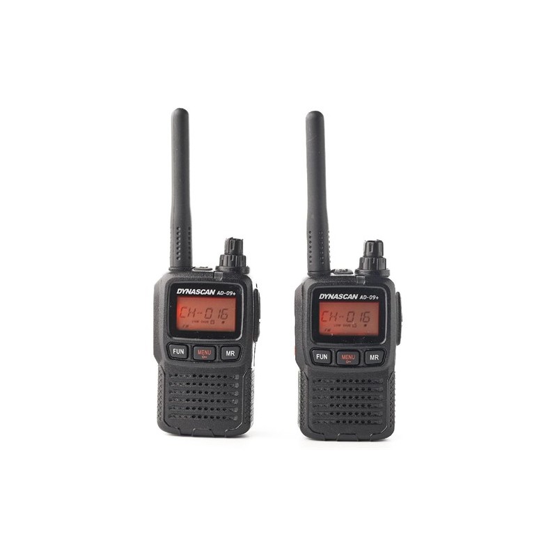 Dynascan - Pareja de Walkie Talkies PMR-446 tamaño compacto, Dynascan AD-09+ | con Microauriculares Incluidos | 8 Canales | VOX | En maletín de transporteMarca DynascanColor NegroNúmero de canales 16Función especial Battery Saver Mode, Keypad Lock, Lightweight, Long Range, RechargableRango de frecuencias 446.00625 - 446.19375 MHzIntervalo de conversación máximo 10 KilómetroTensión 3,7 Voltios (CC)Nivel de resistencia al agua Resistente al aguaDimensiones del producto 80f. x 25an. x 50al. milímetrosCantidad de pilas 1 Litio Ion necesaria(s), incluida(s)Comunícate de forma profesional con los Walkie Talkies Dynascan AD-09+ de manera gratuita, sin tener que pagar por licencia. Con 8 canales y una potencia máxima de 0.5 W, podrás estar en contacto con quien quieras en todo momento.El transceptor portátil PMR-446 Dynascan AD-09+ te ofrece comunicación sin límites gracias a su amplio rango de frecuencias de 446.00625-446.19375MHz. Su tamaño pequeño y ligero y su fácil uso lo hacen perfecto para tiendas, restaurantes, hoteles y más.Los pequeños walkie-talkies Dynascan AD-09+ vienen con todos los accesorios necesarios en un elgante maletín de transporte: microauriculares, cargadores, clips.El Dynascan AD-09+ cuenta con 40 subtonos CTCSS y 80 códigos DCS que permiten evitar interferencias de otros usuarios de Walkies. Gracias a su función VOX, permite usar el portátil con manos libres.El Dynascan AD-09+ es uno de los equipos profesionales más pequeños del mercado, siendo sus dimensiones de tan solo 80 x 48 x 24 milímetros y pesa 125 gramos.Peso del producto 120 gDimensiones del producto 2,5 x 5 x 8 cm, 120 gPilas 1 Litio Ion necesaria(s), incluida(s)Número de modelo del producto DYN-AD-09Características especiales Battery Saver Mode, Keypad Lock, Lightweight, Long Range, RechargableOtras características de la pantalla InalámbricoColor Negro¿Qué hay en la caja? Antena, Cable USB, Maleta de transporte, Comedero de pared 2 uds., Batería 2 piezas (1200mAh), Estación de radio 2 piezas, Soporte para cinturón 2 uds., Manual de usuario, Auriculares con micrófono y botón PTT/Vox 2 piezasPareja de walkies PMR-446 - DYNASCAN AD-09+Los Dynascan AD-09+ Plus son una pareja de walkie talkies PMR-446 (UHF de uso libre, sin licencia) de tamaño reducido y compacto, con carga mediante cable USB, que incluye 2 micro-auriculares, todo ello dentro de un práctico maletín de transporte.Los Dynascan AD-09+ Plus de Dynascan se alimentan mediante una batería de iones de litio de 3,7v / 1.200 mAh. El Dynascan AD-09+ es uno de los equipos profesionales más pequeños de la actualidad, siendo sus dimensiones de tan solo 80 x 48 x 24 milímetros y pesa 125 gramos.DYNASCAN AD-09+Pareja de walkies PMR-446 (sin tasas ni licencia)El Dynascan AD-09+ Plus es un transceptor de uso libre extra pequeño y muy robusto gracias a su chasis de aluminio. Este pequeño Walkie Talkie no requiere licencia y por ello el usuario podrá comunicarse de manera libres sin coste con los demás walkies PMR-446.Podrá elegir entre 8 canales para establecer contacto con otro usuario y cuenta con subtonos CTCSS y códigos DCS que permiten evitar interferencias de otros usuarios.Rango de frecuencias PMR-446 de 446.00625 MHz a 446.19375 MHz.Rango de frecuencias radio FM comercial de 87.5 MHz a 108 MHz.Pantalla LCD con amplia información que le ofrece un manejo sencillo.Indicación de la tensión de la batería al encender el transceptor.Escaneado de canales PMR-446 y escaneado de emisoras de radio FM.Aviso de batería baja.Batería de litio de 3.7 V / 1200 mAh.Función de bloqueo de canal ocupado (BCLO).Ajuste del nivel del squelch (SQL).Función de llamada de emergencia (CALL).Indicador del nivel de la señal transmitida/recibida.Iluminación de la pantalla (LIGHT)Función de transmisión activada por voz (VOX).Función de ahorro de batería (SAVE).Función monitor (SQ)Función de temporizador de transmisión (TOT).Función de bloqueo del teclado (KTONG).Función de apagado automático (APO).