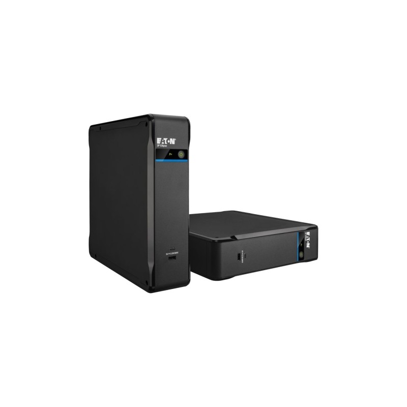 - En espera (Fuera de línea) o Standby (Offline) - 1,3 kVA 840 W - Forma de onda: Progresivo - 8 salidas AC - 12 V 7 Ah - Torre Negro
