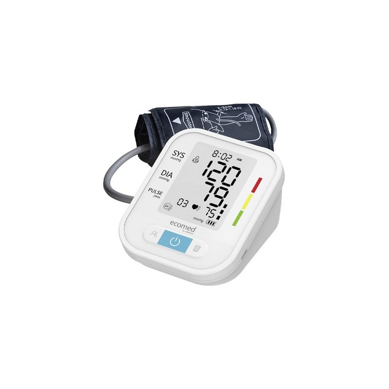 Tensiómetro de Brazo Ecomed BU-95E: Control Sencillo y Preciso de la Tensión ArterialEl tensiómetro de brazo Ecomed BU-95E es un dispositivo médico diseñado para la medición rápida y precisa de la tensión arterial en la parte superior del brazo. Es una herramienta confiable para el control periódico y significativo de tu salud cardiovascular, ideal para ser usado por hasta dos personas.Características DestacadasMedición Rápida y Precisa: Obtén lecturas de tensión arterial de forma eficiente y confiable.Capacidad Multi-Usuario: Permite a dos usuarios almacenar hasta 90 mediciones cada uno, facilitando un seguimiento individualizado.Pantalla de Fácil Lectura: La pantalla digital es clara y muestra la fecha, hora, pulso, sístole y diástole de un vistazo, con grandes dígitos para mayor comodidad.Evaluación Visual: Los valores de medición se evalúan mediante una escala de colores tipo semáforo, proporcionando una comprensión rápida del estado de tu tensión arterial.Detección de Arritmias: Incluye una función para indicar latidos irregulares (arritmia), lo que añade un nivel adicional de monitoreo de la salud.Cálculo de Valor Medio: Si lo necesitas, el dispositivo puede calcular un valor medio de todas las mediciones almacenadas, ofreciendo una visión más completa de tu historial de tensión arterial.Manguito Extragrande: Viene con un manguito adecuado para una circunferencia de brazo de 22 a 36 cm, garantizando lecturas precisas incluso para brazos de mayor tamaño.Detalles TécnicosReferencia / EAN: 4015588232060Método de Medición: OscilométricoRango de Medición:Tensión Arterial:Sístole (SYS): 57 - 255 mmHgDiástole (DIA): 25 - 195 mmHgPulso: 40 - 199 latidos/minAlimentación Eléctrica: Funciona con 4 pilas de 1.5 V (AAA).Dimensiones del Aparato: 11.8 x 9.8 x 6.25 cmPeso (aparato, brazalete y pilas): 390 g