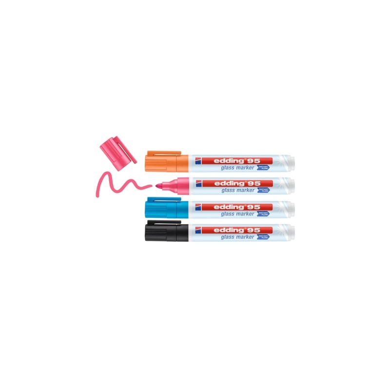 Edding 95 Glass marcador 4 pieza(s) Punta redonda Negro, Azul, Naranja, Rosa