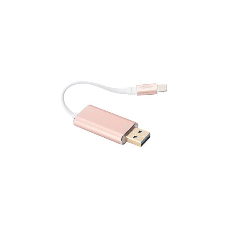 Cables incluidos: LightningCertificación: MFIColor del producto: Oro rosadoFormatos de imagen soportados: BMP,GIF,JPG,PNG,TIFFormatos de texto soportados: DOC, DOCX, Llave, PDF, PPT, PPTX, RTF, TXT, XLS, XLSXFormatos de vídeo compatibles: 3GP,AVI,FLV,M4V,MKV,MOV,MP4,MPG,RM,RMVB,SWF,VOB,WMVManual de usuario: SiMateriales: AluminioPeso: 15 gProductos compatibles: iPhone 5, 5C, 5S, SE, 6, 6, 7, 7 Plus iPad Air, Air 2, Mini 2/3/4, ProProfundidad: 150 mmSistema operativo MAC soportado: SiTarjetas de memoria compatibles: MicroSD (TransFlash)Tipo de embalaje: CajaTipo de interfaz: USB 3.0/Lightning