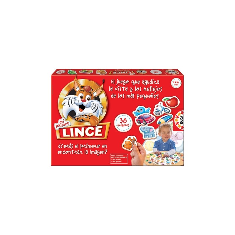 El apasionante juego de competición El Lince en una versión adaptada para los más pequeños (2-4 años). Cada jugador deberá encontrar en el tablero las imágenes cogidas al azar. refuerza la memoria visual y los reflejos. Características - Familia Juego De Cartas - Juego familiar - Número mínimo de jugadores: 1 Número máximo de jugadores: 4 - Grupo de edad recomendada: Niño - Género: Cualquier género - Edad recomendada (mín.): 2 año(s) Especificaciones Características Tipo de producto: Juego De Cartas Género: Familia Número mínimo de jugadores: 1 Número máximo de jugadores: 4 Grupo de edad recomendada: Niño Género: Cualquier género Edad recomendada (mín.): 2 año(s) Nombre del Juego: Mi primer Lince Juego familiar: Si Edad recomendada (máx.): 4 año(s) Uso recomendado: Interior Idiomas de soporte: Español, Portugués Número de cartas: 36 pieza(s) Empaquetado Cantidad por paquete: 1 pieza(s) Aviso de seguridad Advertencia de la Directiva sobre la Seguridad de los Juguetes de la UE: No recomendado para niños menores de 36 meses No adecuado para niños de 0 a 3 años: Si