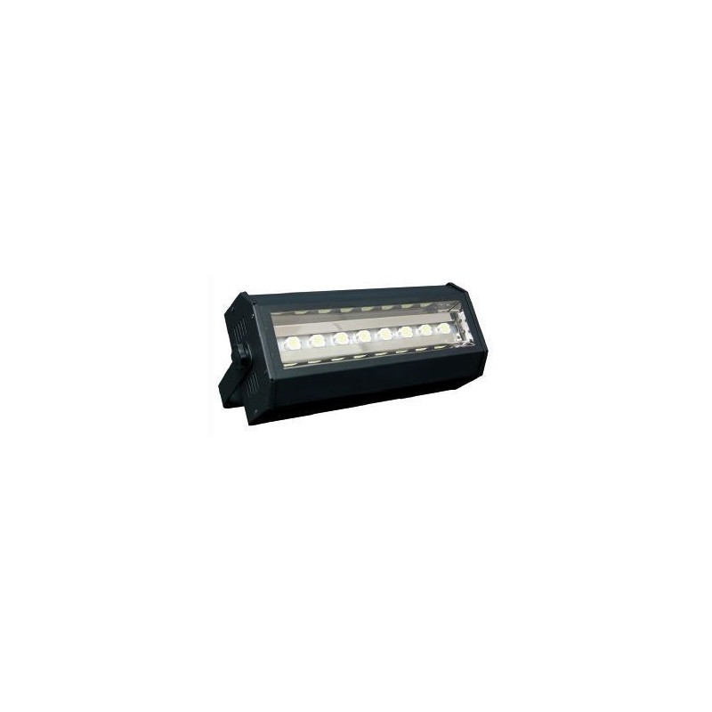 Efecto fl ash que incorpora 8 LEDs blancos de 25W cada uno. Incorpora varios programas de strobo y control mediante DMX (5 canales), Auto, Audio y Master/Esclavo. Incorpora un interfaz con botones de menú y display de funciones. En el modo DMX es posible controlar el dimmer general, la velocidad del strobo y varios tipos de efectos integrados. - Alimentación: AC 220-240V 50/60Hz. - Fuente lumínica: 8 x 25W LED blanco. - Modos de control: DMX, Auto, Audio y master/Esclavo. - Canales DMX: 5 canales. - Dimensiones: 312 x 140 x 89 mm. - Peso: 1.68 kg.