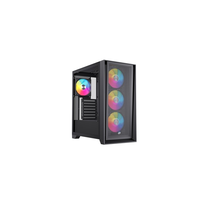 - Tamaño de placa base compatible ATX, Micro ATX, Mini ITX - Tarjeta gráfica de hasta 325mm / 350mm (Con ventilador frontal o sin ventilador frontal instalados) - Refrigeración de CPU hasta 185mm - Capacidad de instalación de refrigeración liquida de hasta 360mm - 4x ventiladores de 120mm con función PWM incluido