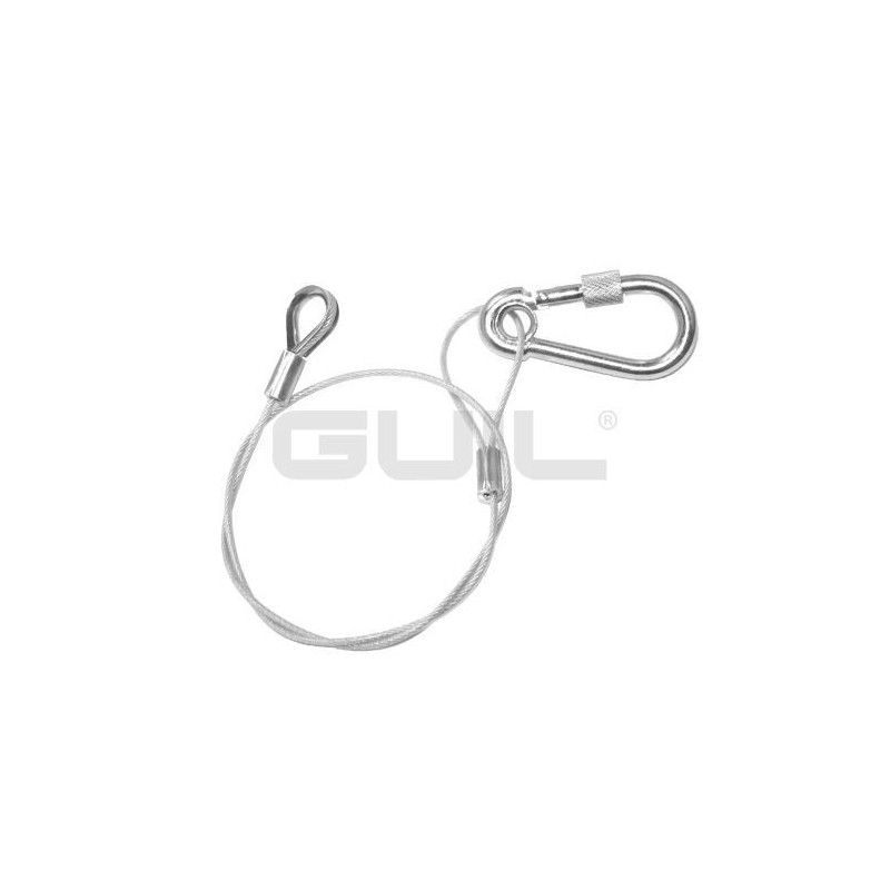 Eslinga de acero inoxidable de Ø2 mm forrada en polietileno transparente con mosquetón con cierre de seguridad. Long. 500 mm Carga Max. 20 kg - Eslinga de acero inoxidable forrada en polietileno transparente (para no marcar) provisto de un mosquetón con cierre de seguridad. - Dotada de casquillo reforzado en cada gaza para que no se salgan las puntas. - Incorpora un guardacabo metálico para reforzar la gaza. - Fabricadas según normas DIN360 (ISO2408).