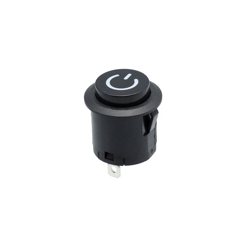 Interruptor negro OFF-ON redondo, con simbolo POWER, 22mm