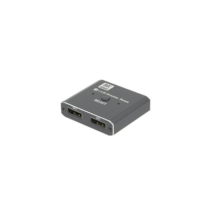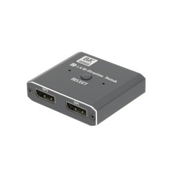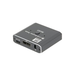 Switch DisplayPort Bidireccional 1x2 (no Splitter) / 2x1 4K@60HzREF: AV39 EAN: 8435419568209 Marca: EUROCONNEXFuncionalidad: Switch (Bidireccional) 1x2 (no splitter) o 2x1Conectividad: HDMIEntradas DisplayPort: 1 o 2Salidas DisplayPort: 1Alimentación: 5V / 2A USB-CResolución máxima: 8K@30HzAncho de banda: 32.4bpsVersión de DP: 1.4Profundidad de color: 32 bitMaterial de la carcasa: MetalColor: NegroContenido de la caja:1 x Switch HDMI 1x2 o 2x11 x Control Remoto1 x Manual de usuario