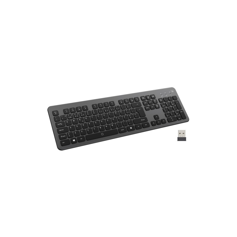 O EW3297 é um teclado fino e de tamanho normal com teclas silenciosas de baixo perfil e 12 teclas multimédia. O teclado tem uma luz de fundo com brilho ajustável. Prefere trabalhar sem luz de fundo? Pode facilmente desativar a iluminação.Teclado com teclas de baixo perfil. O teclado tem um design fino e apresenta teclas silenciosas de baixo perfil, 12 teclas multimédia e bloqueio de teclas do Windows. As teclas multimédia permitem-lhe aceder a funções convenientes, como o controlo de volume, ou abrir e-mails sem esforço.Teclado silencioso. Em comparação com outros teclados, este teclado oferece prensas silenciosas que reduzem o excesso de ruído durante a digitação. Este teclado é ideal para uso no escritório.Backlight. O EW3297 está equipado com uma luz de fundo. Pode facilmente ajustar o brilho com as teclas dedicadas no teclado. A iluminação ajuda-o a encontrar chaves mais facilmente quando trabalha num ambiente mais escuro. Prefere trabalhar sem luz de fundo? A luz de fundo também pode ser desativadaTeclado sem fios e Bluetooth multi-dispositivoO teclado sem fio Ewent EW3297 possui Bluetooth e tecnologia sem fio 2.4G. Você pode conectar até três dispositivos ao mesmo tempo e alternar entre eles pressionando o botão dedicado. O teclado é compatível com PCs Windows, laptops, PCs, Windows e Android.Design em tamanho realO material utilizado para o teclado sem fios Ewent é o policarbonato de alta densidade para aumentar a sua durabilidade. O grande tamanho do teclado permite aos seus dedos amplo espaço para facilitar a digitação.