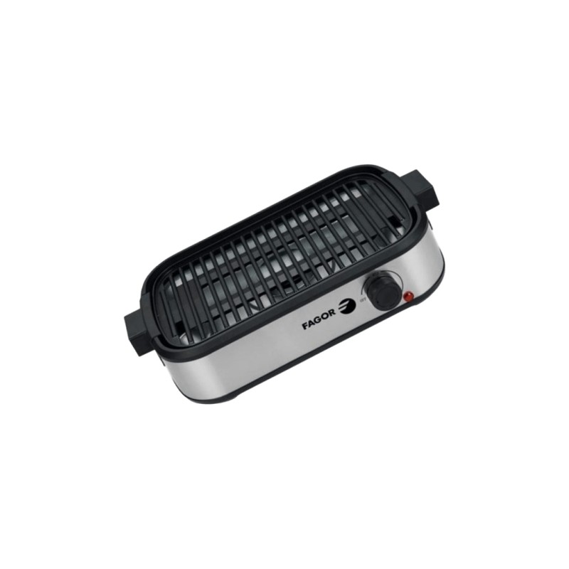 Características Fagor SmokeFree Independiente 1800 W Negro, Acero inoxidable Especificaciones Diseño Color del producto: Negro, Acero inoxidable Tipo de instalación: Independiente Número de zonas de cocción: 1 zona(s) Tipo de control: Giratorio Luz de indicación: Si Fácil de limpiar: Si Base antideslizante: Si Bandeja de goteo: Si Capa antiadherente: Si Desempeño Ajustes de termostato: Si Temperatura (min): 80 °C Temperatura (máx): 230 °C Control de energía Potencia: 1800 W Peso y dimensiones Ancho: 440 mm Profundidad: 105 mm Altura: 270 mm Empaquetado Ancho del paquete: 305 mm Profundidad del paquete: 450 mm Altura del paquete: 135 mm