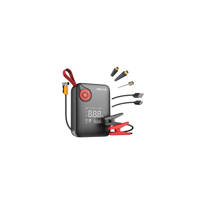 ARRANCADOR PORTATIL 4 EN 1 JS-400 FOREVERREF: GSM1867185907457797185• Powerbank 7200mah• Pico de capacidad Arranque 600A• Compresor inflador hasta 150psi• Linterna led• Salida USB C 18w • Pantalla lcd