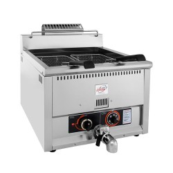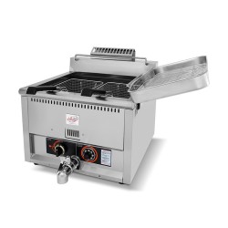 • Freidora a gas con doble cesta diseñada para uso profesional.