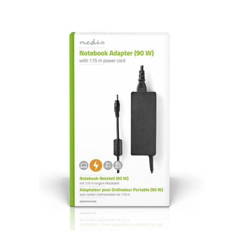 Nedis.Fuente de 90W y tensión de salida de 18 VCC y un máximo de 4,9 A de corriente de salida, lleva incorporado un conector de CC fijo Bullet de 4,8 x 1,7 mm.Utilizado para HP (y dispositivos de similar voltage)