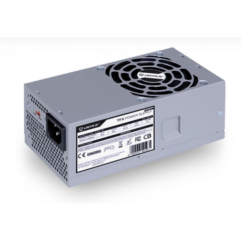 Fuente UNYKA TFX 350W 52014.La fuente de alimentación 52014 en formato TFX de 350W, dispone de múltiples sistemas de protección contra sobretensión, baja tensión, sobreintensidad y cortocircuitos. Incluye un ventilador de 80 mm ultra silencioso DIMENSIONES 200 (l) x 105 (w) x 90 (h) mm