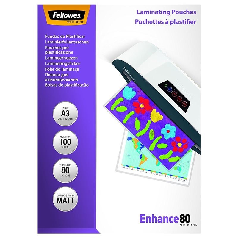 Fundas de plastificar fellowes 5452003 a3 mate 80 micras pack 100
