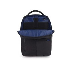 Mochila 2 departamentos para portátil de 15.6 pulgadasGabol IntroMochila para portátil de 15,6´´ con 2 compartimentos. Fabricada con material hecho con plástico reciclado e impermeable. Los cursores de las cremalleras se enganchan entre sí para mayor seguridad. Interior acolchado con compartimento para portátil y organizador. Medidas: 43x31x12 cm. Capacidad de 14 L.