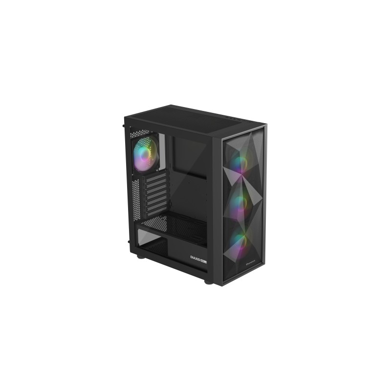 - Midi Tower PC Juego - ATX, micro ATX, Mini-ATX - Tamaños de disco duro soportados: 2.5,3.5" - Número de bahías 2.5\'\': 3 Número de puertos 3.5": 2 - Ventana lateral Iluminación Ámbar, Azul, Verde, Rojo Panel(es) de vidrio templado Filtro anti-polvo - ABS, Acero, Vidrio templado - Negro
