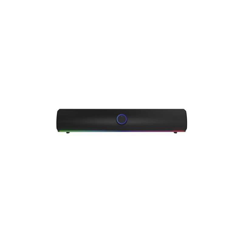 Características - 2.0 canales 10 W - Potencia de la barra de sonido del altavoz RMS: 10 W - Negro - Inalámbrico y alámbrico Bluetooth 5.2 Especificaciones Audio Canales de salida de audio: 2.0 canales Potencia estimada RMS: 10 W Barra de sonido del altavoz Potencia de la barra de sonido del altavoz RMS: 10 W Divisor de frecuencia: 20000 Hz Relación señal/ruido (SNR): 75 dB Diámetro del tweeter (imperial): 5,08 cm (2") Subwoofer Subwoofer incluido: No Características Color del producto: Negro Montaje de pared: No Iluminación LED: Si Iluminación de color: Multi Puertos e Interfaces Tecnología de conectividad: Inalámbrico y alámbrico Bluetooth: Si Wifi: No Número de puertos HDMI: 0 Versión de Bluetooth: 5.2 Puerto USB: Si Cantidad de puertos USB 2.0: 1