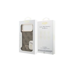 GUESS CARCASA MAGSAFE 4G TRIANGLE SOPORTE CAMARA IPHONE 17 PRO MAX MARRONMarca: GUESSModelo: iPhone 17 Pro MaxReferencia interna: GUHMP17XPCS4GPTWCódigo de barras: 3666339534462La carcasa de móvil Guess con soporte de camara es el complemento perfecto para tu teléfono, ya que combina funcionalidad y estilo en uno.Ofrece una excelente protección y comodidad durante su uso.El acabado de la carcasa garantiza que se agarre perfectamente a la mano y no resbale, lo que minimiza el riesgo de que el teléfono se nos escape.Gracias a su forma precisa, encaja perfectamente en el teléfono y permite un fácil acceso a todos los botones y conectores.El diseño con el dominante logotipo de Guess en metal 4G atraerá a todos y se combina fácilmente con cualquier conjunto.Además, la funda cuenta con un práctico soporte ubicado en el marco de la cámara trasera.Este permite una posición estable de su dispositivo, gracias a lo cual puede disfrutar cómodamente de la visualización de series, vídeos o videollamadas.Si busca una funda que combine elegancia y uso práctico, este artículo de Guess es la opción adecuada para usted.Características clave:- Ligero y resistente- Se sostiene perfectamente en la mano y no resbala- Copia exactamente la forma del teléfono y permite un fácil acceso a los botones y conectores.- Protege el teléfono del polvo y los arañazos- Soporte práctico de cámara en la parte trasera- Un complemento elegante y funcional para tu teléfono y tu atuendo