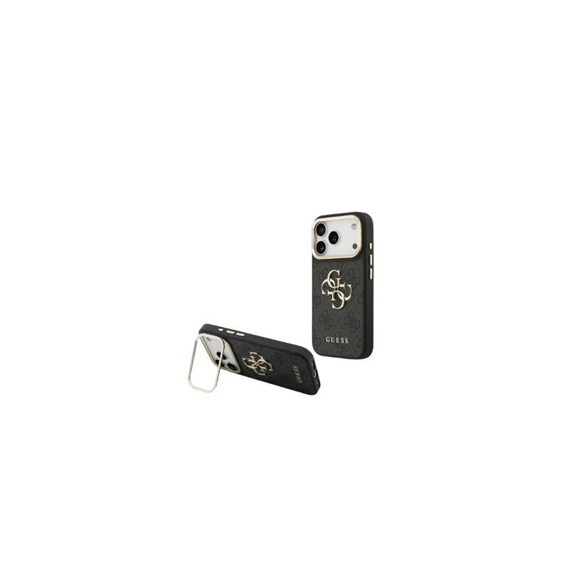 GUESS CARCASA 4G SOPORTE CAMARA IPHONE 17 PRO MAX NEGROMarca: GUESSModelo: iPhone 17 Pro MaxReferencia interna: GUHCP17XPCS4GP4KCódigo de barras: 3666339571504Carcasa GUESS 4G con Soporte de CámaraUn accesorio que combina elegancia premium con la máxima practicidad. Diseñada por GUESS, esta funda ofrece estilo, protección y funcionalidad en un solo producto.Características principalesProtección total y resistenteFabricada con materiales de alta calidad, protege tu iPhone contra caídas, golpes y arañazos manteniendo un perfil delgado y sofisticado.Soporte integrado en la cámaraInnovador soporte plegable que se despliega en el aro de la cámara, ideal para mantener el móvil en posición horizontal o vertical y disfrutar de series, videollamadas o trabajo sin usar las manos.Compatibilidad MagSafeImán incorporado de alta potencia que asegura carga inalámbrica rápida y estable con accesorios MagSafe.Diseño icónico de lujoCon el logotipo metálico 4G en relieve Dorado, esta funda refleja el inconfundible estilo de GUESS.Ajuste perfecto y accesibilidad totalRecortes de precisión para cámara, botones y puertos, garantizando un uso cómodo y seguro.