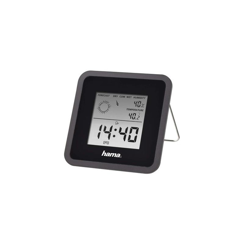 Mantén controlada la temperatura y la humedad de tu hogar con este termómetro e higrómetro digital de Hama. Además también podrás ver la hora.Color NegroMarca HamaDimensiones del producto: largo x ancho x alto 10.5 x 8.6 x 3.2 centímetrosPeso del producto 66 GramosVisualización digital de temperatura, humedad ambiental, tiempo y aire de la habitaciónÍndice de confort para la humedad del aire con pantalla demasiado seca, óptima y demasiado húmeda, para un clima interior saludablePrevisión meteorológica: soleado, nublado, nublado, lluviosoSe puede cambiar entre grados Celsius y grados Fahrenheit y La hora puede cambiar entre el formato de 12 y 24 horas¿Qué incluye? 1 termometro e higrómetro TH50 de Hama, 1 pila CR2025, 1 Manua de instrucciones