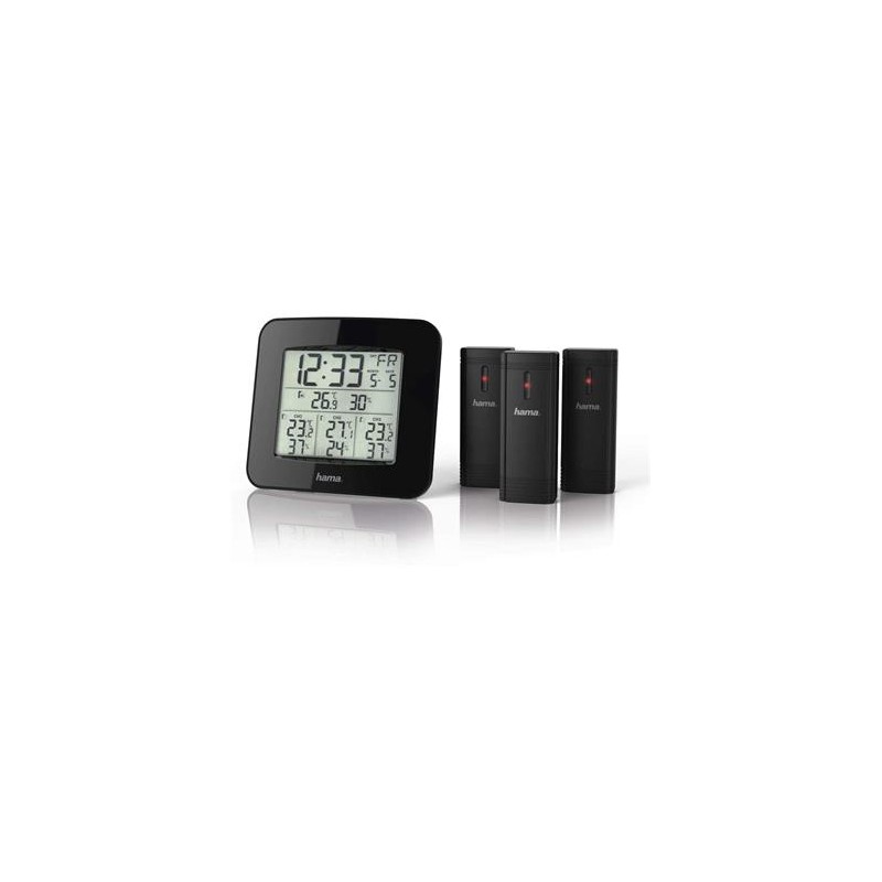 Conoce la temperatura de tu hogar y la exterior con esta estación meteorológica de Hama. Dispone de 3 sensores para que puedas colocarlos en puntos estratégicos y puedas saber la temperatura fácilmente. Además en Hama nos gusta hacer la vida más cómoda a nuestros consumidores por ello, esta estación meteorológica no solo te indicará la temperatura y la humedad si no que también sirve como reloj radio despertador. Su función de alarma despertará a los más dormilones ya que aumenta su volumen en función de lo que se tarde en apagarla. Pantalla LED con retroiluminación.Marca Hama¿Se incluyen las pilas? NoDimensiones del producto: largo x ancho x alto 34 x 7.5 x 49.5 centímetrosFuente de alimentación BateríaCantidad de pilas 3 AAA (Tipo de pila necesaria)Tipo de pantalla LEDEstación meteorológica para exterior e interior de Hama con 3 sensores inalámbricos.Radio reloj DCF incorporado. Esta termómetro digital no solo te indicará la temperatura y humedad si no que también dispone de las funciones de reloj, radio y despertador.Pantalla digital LED con retroiluminación. Tan solo tendrás que pulsar para que se ilumine y ver la hora que es de noche.Opción de montaje en la pared para mayor comodidad.¿Qué incluye? 1estación meteorológica EWS Trio, 3 sensores, 3 pilas AAA Micro, 6 pilas AA Mignon, 1 manual de instruccionesMarca: HamaFabricante: HamaModelo: 00186311Dimensiones del producto: 34 x 7.5 x 49.5 cm, 530 gramosPilas: 3 AAA (Tipo de pila necesaria)Número de modelo del producto: 00186311Número de producto: 00186311Componentes incluidos: 1estación meteorológica, 3 sensores, 3 pilas AAA Micro, 6 pilas AA Mignon,Número de productos: 1Tipo de pantalla: LEDFuente de alimentación: BateríaPilas / baterías incluidas: NoPilas / baterías necesarias: SíComposición de la pila de la batería: AlcalinaTipo de material: PlásticoPeso del producto: 530 g