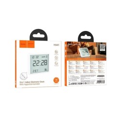 Hoco HX41 Monitor Atmósferico con Temperatura Humedad y RelojReferencia 4070110123Hoco HX41 Reloj Electrónico con Monitor Atmosférico BlancoPresentamos el Hoco HX41, un innovador reloj electrónico diseñado para brindarte un control preciso del microclima en tu hogar. Este dispositivo combina un termómetro, un higrómetro y un reloj en un solo y elegante aparato, ideal para interiores.Características PrincipalesMaterial: Fabricado en plástico ABS de alta calidad, garantizando durabilidad y resistencia.Tamaño: Compacto y ligero, con dimensiones de 77 × 68 × 12 mm y un peso de solo 70 g, lo que lo hace perfecto para cualquier espacio.Pantalla: Equipado con una pantalla LCD que muestra simultáneamente la temperatura, la humedad y la hora.Batería: Funciona con una batería de 200mAh/CR2032, asegurando hasta 10 meses de uso continuo.Actualización de Datos: Ofrece actualizaciones automáticas de los datos cada 15 segundos para que siempre estés informado del estado actual de tu entorno.Especificaciones TécnicasEl Hoco HX41 no solo es funcional, sino que también destaca por su diseño moderno en color blanco, que se adapta a cualquier decoración. Este dispositivo es ideal para habitaciones, oficinas y cualquier espacio donde desees mantener un control óptimo de la temperatura y la humedad.Uso y BeneficiosCon el Hoco HX41, puedes monitorizar de manera precisa el clima de tu habitación, lo que resulta esencial para el bienestar y la salud. Mantener los niveles de humedad adecuados puede ayudarte a prevenir problemas respiratorios y asegurar un ambiente más confortable.Gracias a su diseño intuitivo y fácil de leer, este reloj electrónico es perfecto para cualquier persona que busque un control eficiente y estilizado de su entorno. No dejes pasar la oportunidad de mejorar tu calidad de vida con el Hoco HX41.