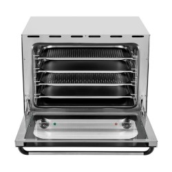 • Horno de convección industrial de uso profesional indispensable en panadería, repostería, hostelería y restauración en general.• Su sistema de doble ventilación, distribuye el flujo de aire de forma homogénea, permitiendo un cocinado uniforme.• Potencia 2.600 W.• Fabricado en acero inoxidable.• Ventana de visión extra grande.• Fácil de limpiar.• Medidas: 59.5x60x58 cm.