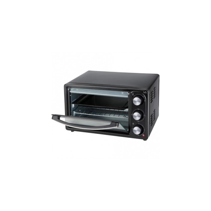 DESCRIPCIÓN DEL PRODUCTOS Horno, grill. Capacidad 16 L. Temporizador de 60 minutos. Resistencias en acero inoxidable. Termostato regulable de temperatura. Bandeja. Parrilla. Asa para extraer bandeja y parrilla. Puerta abatible. Indicador luminoso. Medidas exteriores: 39 x 29 x 25 cm. Voltaje 230 V. Potencia 1.200 W.
