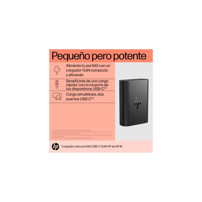 HP Cargador para portátil de con USB-C GaN de 65 W