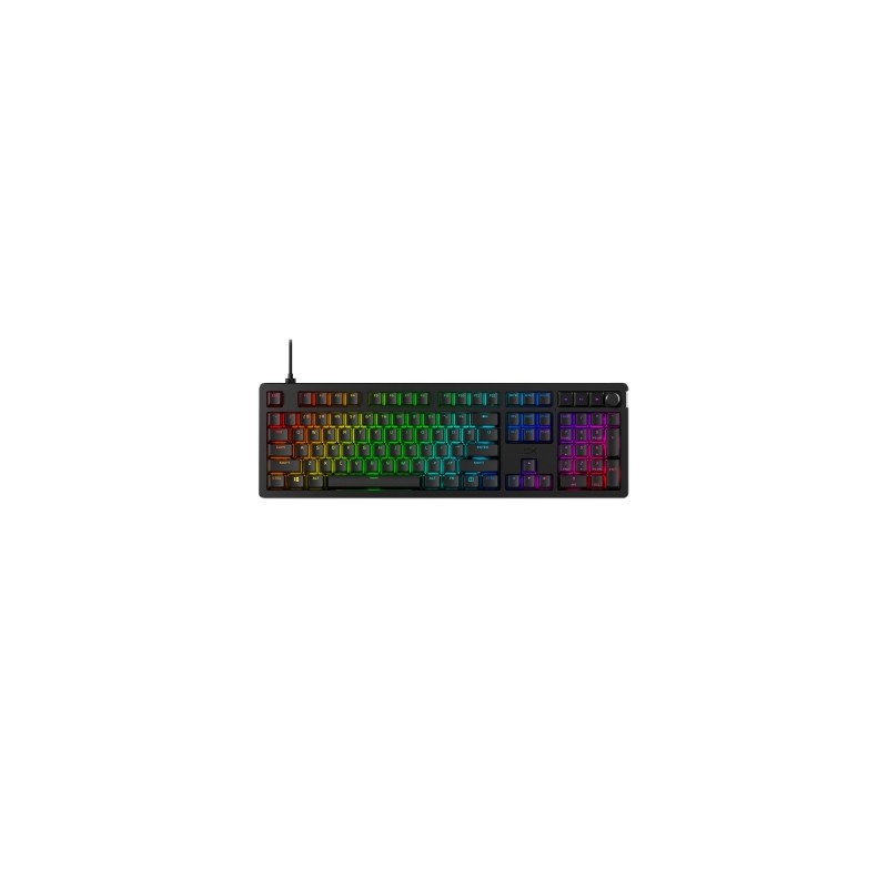 - Gracias a la posibilidad de intercambiar sin herramientas placas superiores, distintivos y botones rotatorios, tendrás a tu disposición una infinidad de formas de demostrar tu estilo particular[2]. ¡Destaca sobre el resto! - Lleva aún más lejos la personalización del teclado con la posibilidad de cambiar los interruptores de las teclas en caliente. - El teclado Alloy Rise es el primer teclado gaming del mundo con un sensor de luz ambiental que permite ajustar de forma dinámica la retroiluminación RGB a las condiciones lumínicas del entorno[5]. Selecciona tus preferencias en NGENUITY para comenzar. - El Alloy Rise se monta dentro de una junta y añade a esta característica unos interruptores lineales HyperX suaves y fáciles de accionar para que usar el teclado sea una experiencia aún más gratificante. - Los interruptores lineales HyperX[3] cuentan con un émbolo de POM de longitud media para una mejor estabilidad de las teclas HyperX de PBT ya montadas. Además, estos se han lubricado de fábrica, para que su accionamiento sea más suave y soporten hasta 80 millones de pulsaciones[1]. - Toma el control de la diversión con unos controles multimedia dedicados para avanzar, retroceder, reproducir y pausar. Utiliza el botón giratorio para ajustar o silenciar el volumen. - Con la posibilidad de guardar unos monumentales 10 perfiles directamente en el teclado, serás capaz de tener una iluminación y una configuración de macros lista para cualquier situación, donde sea que te encuentres. - La conexión USB extraíble y alineada a la izquierda hace que tener los cables organizados y transportar el teclado sea coser y cantar.