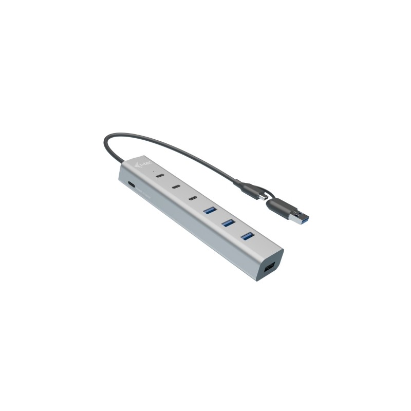 USB-A, USB-C, USB4 y Thunderbolt 3 o 4 son cada vez más populares en los portátiles y tabletas actuales. Junto con su creciente uso, el número de puertos USB en el cuerpo de los portátiles está disminuyendo. Y si necesitas conectar accesorios a tu dispositivo que ya no tiene suficientes puertos, puedes usar este pequeño pero práctico hub que también admite carga activa.Con este hub, obtienes 7 puertos USB adicionales (4x USB-A y 4x USB-C). Conecta un teclado y un ratón externos, transfiere datos o películas desde una unidad flash USB a una velocidad de hasta 5 Gbps o carga tus dispositivos móviles a una potencia de hasta 7,5 W.El Hub no requiere instalar controladores, solo tienes que conectarlo con el cable USB-C o USB-A y podrás empezar a usarlo de inmediato. El Hub incorpora protección contra sobretensiones para tu ordenador en caso de cortocircuitos en los periféricos. Gracias a su tamaño compacto y su ligereza, podrás llevarlo siempre en el bolso: la superficie metálica protege el Hub de daños y arañazos.El Hub admite carga, a través de un adaptador USB-C externo de hasta 15W (5V, 3A)*.* Adaptador no incluido.