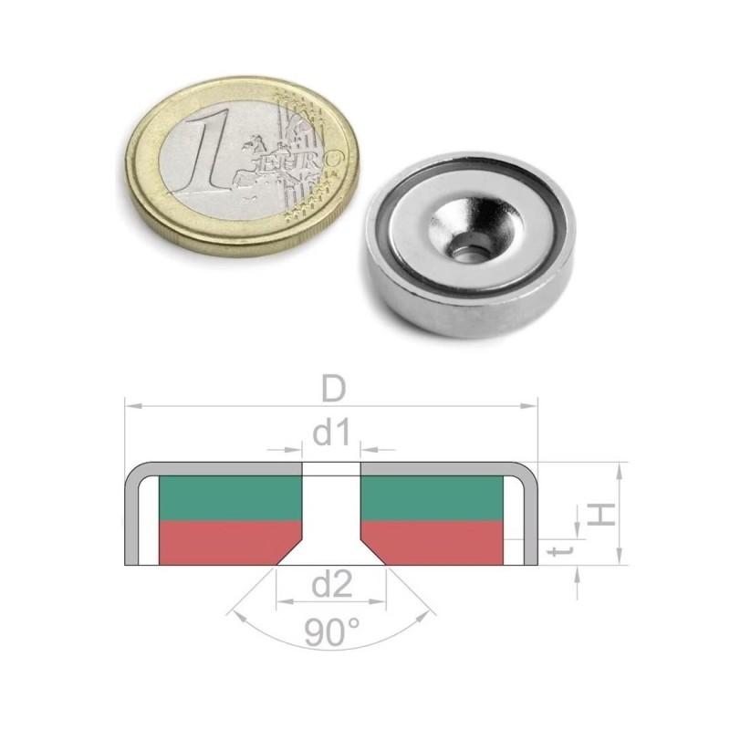 Iman en recipiente avellanado 20x6mm Neodimio FA-8.9 Kg