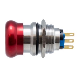 Interruptor tipo seta de emergencia, diámetro 28mm, en acero inoxidable, agujero 22mm, DPDT